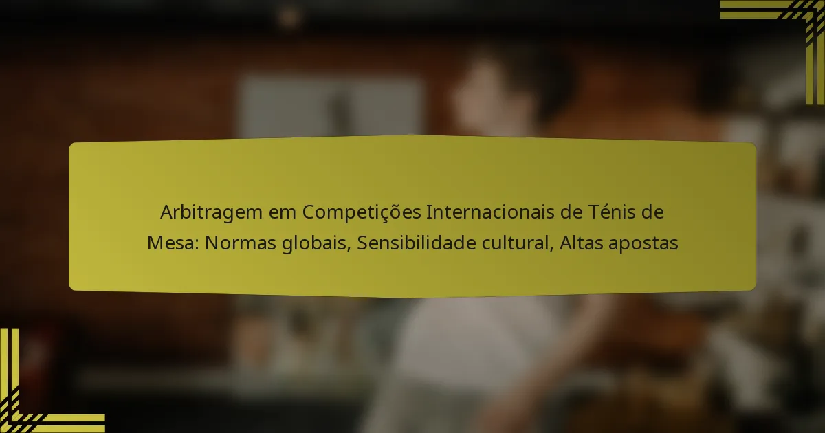A arbitragem no ténis de mesa internacional é regida por padrões globais estabelecidos pela Federação Internacional de Ténis de Mesa (ITTF), que promovem a justiça e a integridade nas competições. O papel dos árbitros é ainda mais complicado pela necessidade de sensibilidade cultural, uma vez que as suas decisões devem respeitar os diversos contextos e comportamentos dos jogadores. Dadas as altas apostas envolvidas, os julgamentos dos árbitros podem influenciar significativamente os resultados dos jogos e as carreiras dos atletas, destacando a importância da sua formação e avaliação de desempenho.